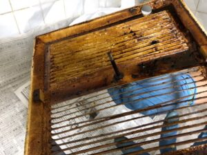 換気扇を開けるとそこは、油でベトベト状態でこの時期のベトベトは気温が低い為、油が固まって取れないのです!
