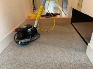 マンションの原状回復クリーニングで玄関の床を器具を使用して洗浄しました。
